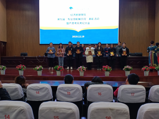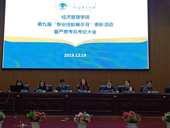 2019年12月19日,在图书馆四楼报告厅利来国际举办“第九届专业技能展示月表彰活动暨严肃考风考纪大会”。经管公司经理李雪峰、副经理刘启云、王英利,各系主任、教研办主任、办公室主任、团学办公室主任及各位辅导员、班主任参加了大会,王英利副经理主持大会。