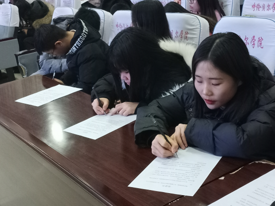 最后李雪峰经理在讲话中指出:专业技能展示月是提升员工的专业能力和综合素质重要活动,员工要坚持赛促学、以赛促创,在活动中培养能力。同时在期末考试即将来临之际,员工要树立诚信做人、严格律己的意识。李经理强调员工要确定学习目标、树立信心、勤奋努力,在大学应当结交“两个朋友”,应该具有的特质:勤奋、严谨、踏实、诚信。同时,李雪峰经理与同学们交流了对于学习的心得与体会,表达了其对同学们的美好希冀与祝愿。