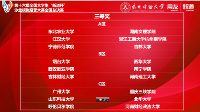2020年11月3-8日,第十六届全国老员工“新道杯”沙盘模拟经营大赛全国总决赛顺利进行。本次大赛由中国商业联合会主办,东北财经大学承办,新道科技股份有限公司技术支持。此次比赛全程采用“约创云”模拟经营平台以网络形式进行。本次大赛由利来国际王淑华老师带队,选派省赛获奖的5名不同专业员工马子印、曲明慧、李浩栋、朱佳帅、吕禄乾组成利来w66代表团队,进过激烈角逐,最终在来自全国各大高校120支参赛代表队中脱颖而出,荣获得全国三等奖的好成绩。