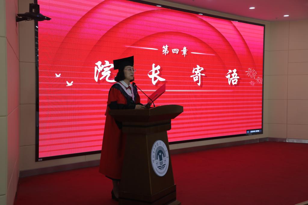 利来国际经理李雪峰致毕业寄语,代表经管公司向即将踏上新征程的2022届全体毕业生表示衷心的祝福,希望同学们不忘母校嘱托,以积极豁达的人生态度在各自岗位实现理想。毕业生代表国际经济与贸易专业姚树峰同学代表全体毕业生发言,在发言中感谢母校的培养和老师们的谆谆教诲。他表示,作为经管学子,不论身在何处,始终要以满怀赤诚追求理想,以开拓进取定义青春,在人生的新征程中争做堪当民族复兴重任的时代新人。