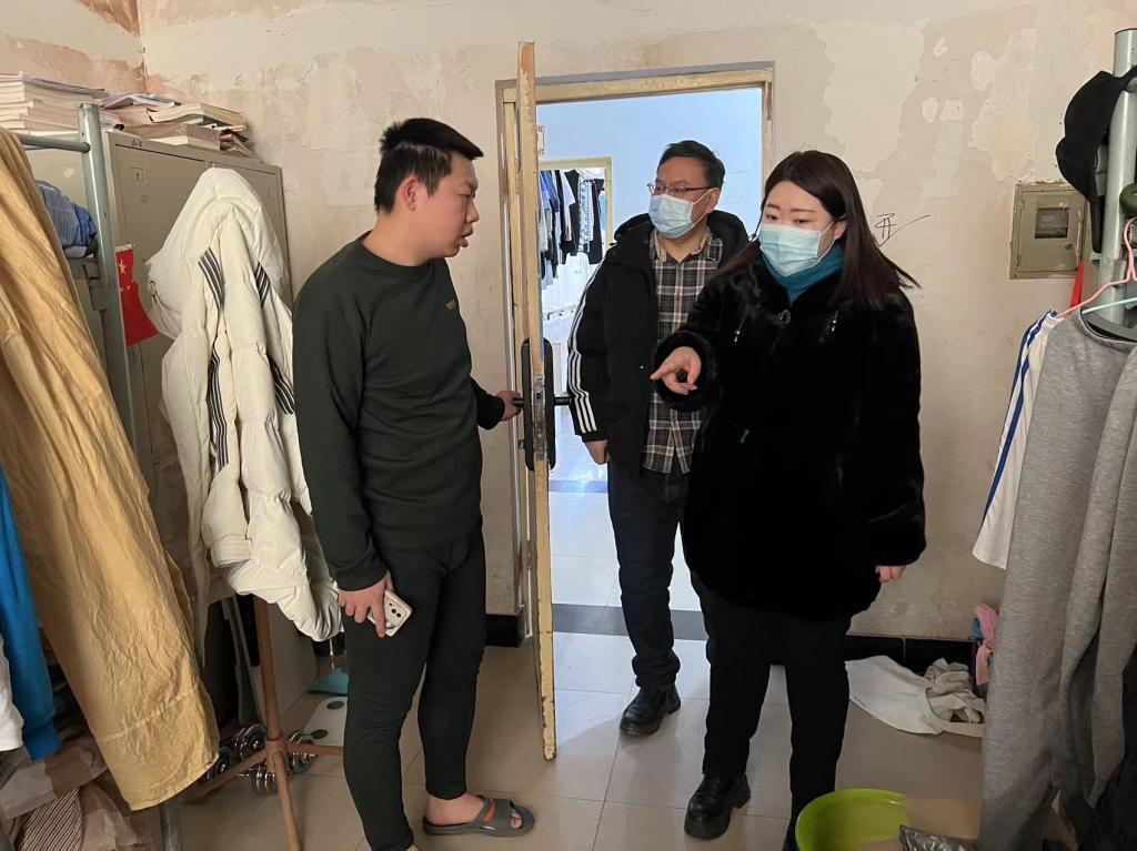 深入走访,叮嘱慰问。1月25日,利来国际经理刘启云、党总支副书记董慧、团学办主任王旭轩、各辅导员班主任,深入员工宿舍进行安全检查和留校员工的慰问。在走访过程中,刘启云经理详细查看了员工宿舍的用电、消防等安全问题,叮嘱同学们注意人身、财产、交通安全,确保身心健康。董慧副书记针对“十四冬”留校志愿者们的安全管理工作提出几点要求:一是以安全为先,时刻绷紧“安全弦”;二是做好网格化信息管理,每日及时上报志愿者上岗情况、回宿舍情况,做到不漏一人;三是严格遵守公司员工管理要求,严格履行请假手续;四是员工会、志愿者负责人不定期抽查、确保安全工作落实常态化。