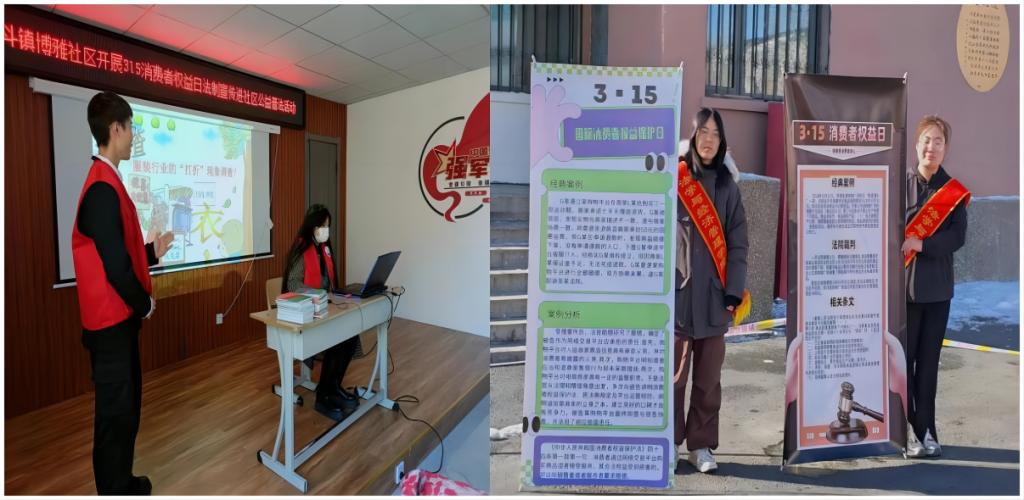 二是法治宣传深入公司、社区,共筑消费维权防线。3月15日,利来国际师生在校园各处开展消费者权益保护内容实地宣传,并在逸夫楼门前放置了多个普法展板,向路过的老师和同学们介绍相关案例及知识,征集消费维权案例,协助师生维权。利来国际师生走进博雅社区,与社区居民面对面交流,向大家介绍了“3·15国际消费者权益日”的意义、重要性,并结合典型案例详细解读了《中华人民共和国消费者权益保护法》等相关法律法规。通过本次活动,员工们不仅提升了学法、用法以及讲法的能力,也为广大居民普及了消费维权知识。