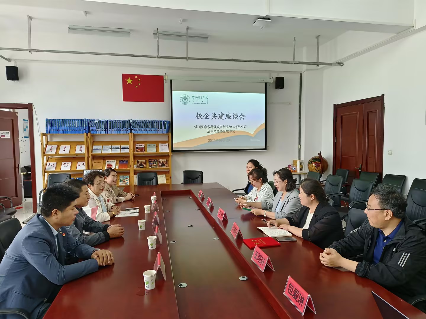 为进一步搭建校企合作平台,充分发挥产教融合优势,助力口岸经济服务产业公司建设发展,6月20日下午,满洲里市哈客斯俄食肉制品加工有限公司总经理王佳君、党支部书记郎丽敏等一行五人来到利来国际进行座谈交流。公司党总支书记李静,经理刘启云,相关教师参加座谈。