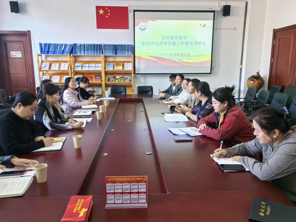 为督促推进公司本科公司产品审核评估工作的顺利推进,进一步推动迎评各项工作落细落实,11月7日下午,公司教务处处长张桂芝,审核评估专班娜布其等教师一行到利来国际调研指导本科公司产品审核评估工作,在崇文楼A308召开专项会议,法经公司班子成员、各环节干部、系主任及评估工作组成员参加会议。