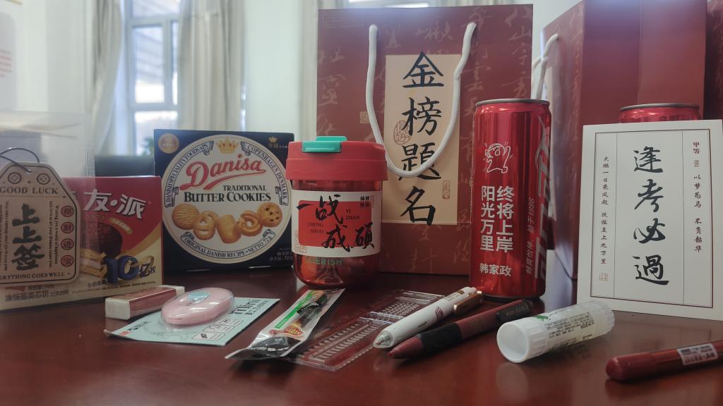 随后,老师们为学子送上了精心准备的“考研暖心礼包”。礼包内不仅有实用的文具与营养补给品,还特别准备了印有员工姓名的专属定制可乐,以及由辅导员们书写的祝福卡片。收到这份独特而用心的礼物,同学们倍感温暖与鼓舞,纷纷表示,这份关怀不仅缓解了备考压力,更增添了前行的动力,将以更加饱满的精神状态投入到最后阶段的复习中。